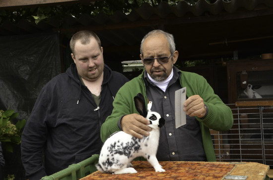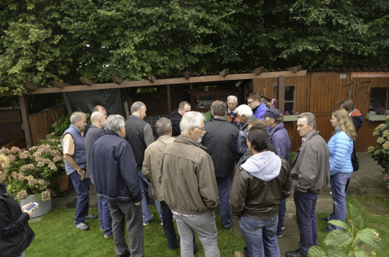 Vormittags genoss die muntere Schar den ausgiebigen Brunch bei Christian und Ursula Braun in der Badi Kirchberg. Dann ging es weiter nach Subigen zu den Englischschecken Züchtern Peter und Roland Christen, wo es viele schöne Tiere der Farbenschläge blau (Roland) und schwarz (Peter) zu sehen gab. Die Schäggeler fühlten sich allesamt im Element und diskutierten ausgiebig, wobei auch immer wieder die zu erwartenden Auswirkungen des neuen Standards zur Sprache kamen.
