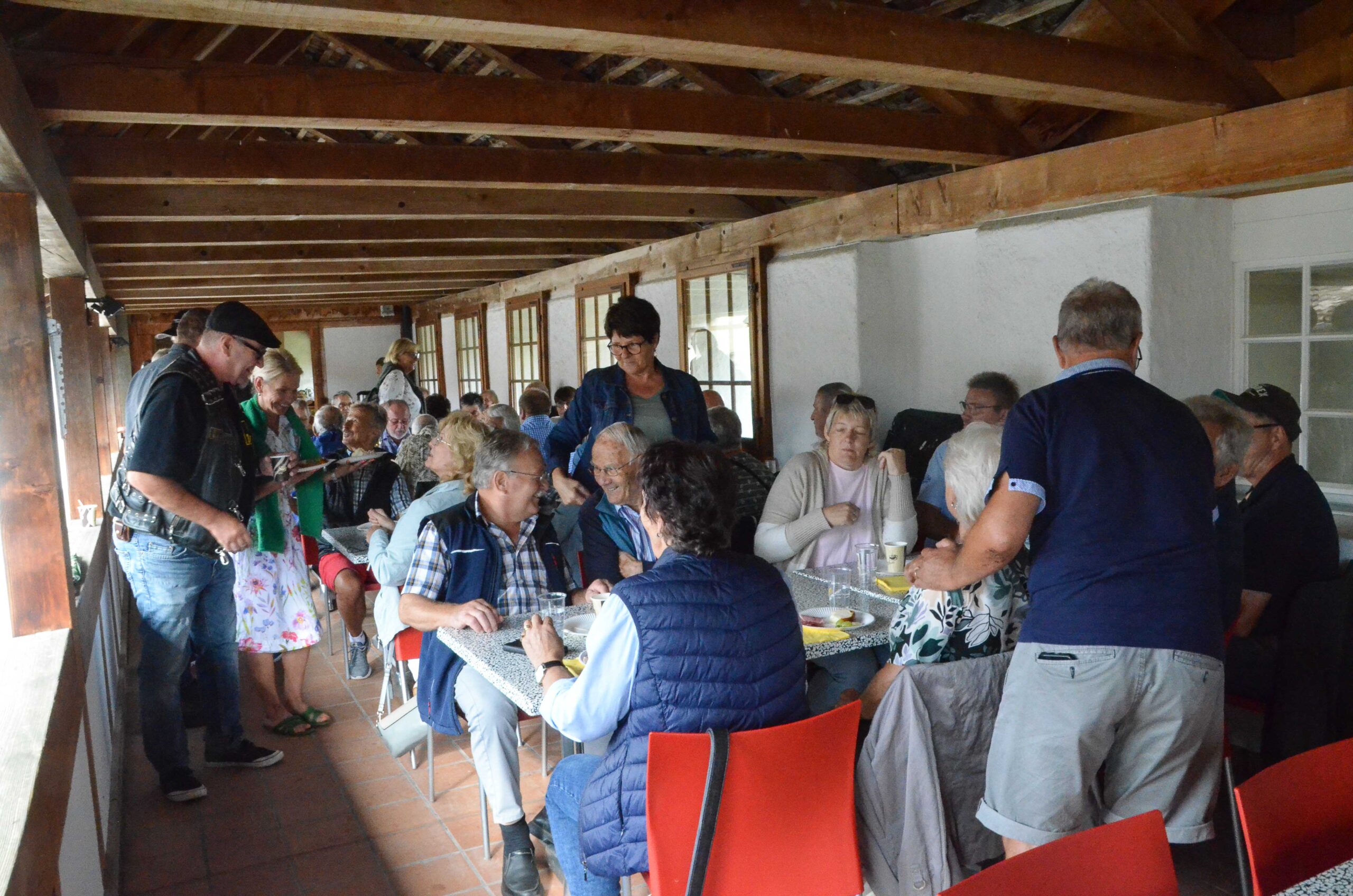 Nach dem obligaten Gruppenfoto ging es in den Gasthof Drei Eidgenossen in Bösingen, wo uns ein ausgezeichneter „Sensler Braten“ serviert wurde. Meinungen wurden ausgetauscht, es wurde gefachsimpelt und Kameradschaft gepflegt.